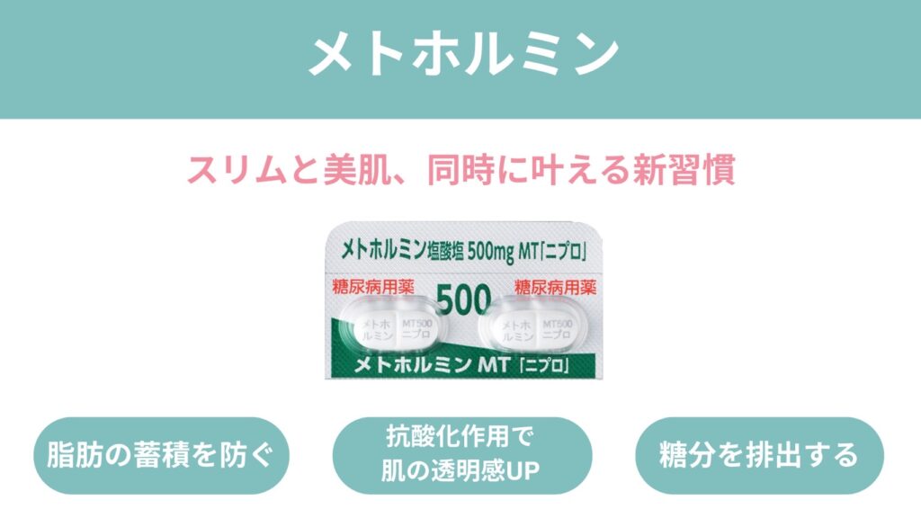 メトホルミンは、血糖値や体重管理に不安を感じている方や、健康と美容を両立したい方におすすめなお薬です。